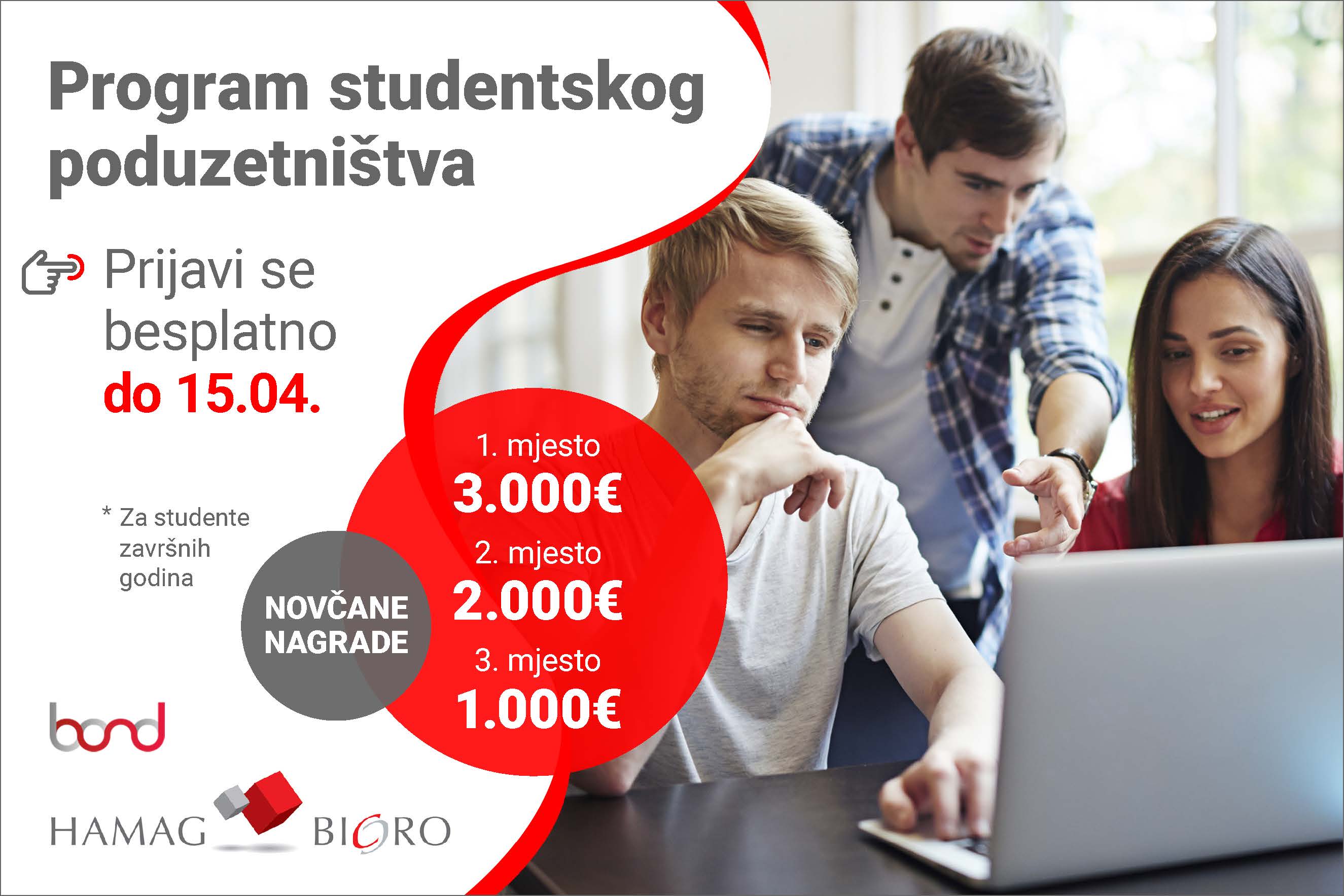 Hrvatska agencija za malo gospodarstvo, inovacije i investicije (HAMAG-BICRO) objavljuje Javni poziv za prijavu i sudjelovanje u Programu studentskog poduzetništva u sklopu razvoja studentskog poduzetništva u okviru projekta BOND 2.