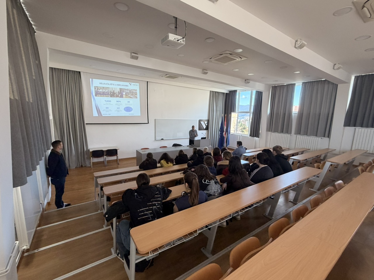 Domaćini susreta, dr. sc. Ozren Rafajac, pročelnik Poslovnog odjela i dr. sc. Bernard Vukelić, prodekan za međunarodnu suradnju, proveli su učenike kroz ključne prostore Veleučilišta. Uz obilazak suvremeno opremljenih laboratorija, knjižnice i učionica, maturantima su predstavljeni konkretni razlozi zašto odabrati studij upravo ovdje: