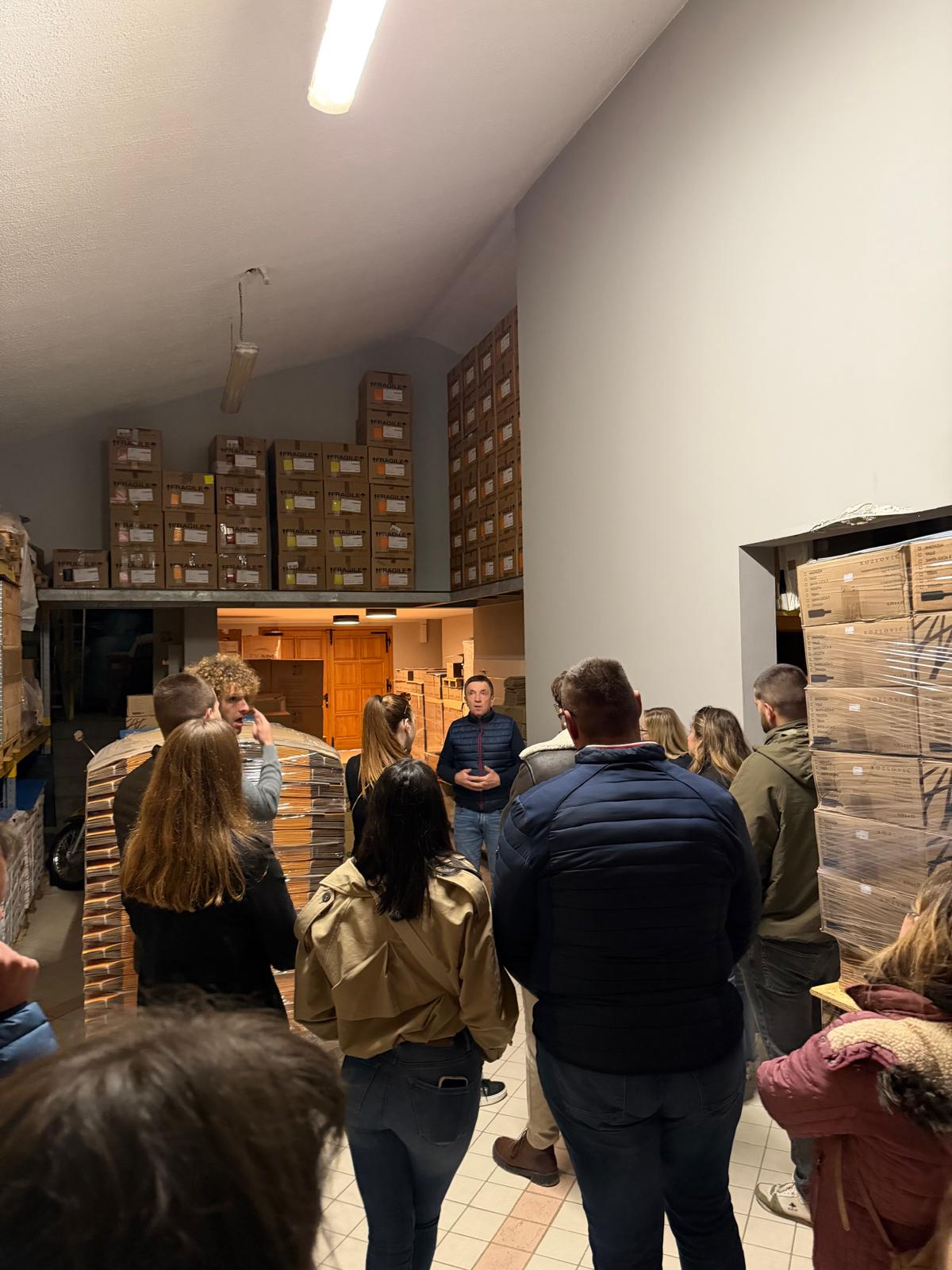 Nakon obilaska vinograda, studenti su posjetili podrum vinarije, gdje ih je kroz tehnološki proces proizvodnje vina proveo Gianfranco Kozlović. Tijekom obilaska detaljnije je predstavljena tehnologija proizvodnje vina, pri čemu su studenti upoznati s pojedinim fazama vinifikacije, kao i s tehnološkim odlukama koje utječu na stil i kvalitetu vina. U izlaganju je također dan osvrt na aktualne trendove u suvremenom vinarstvu te na izazove s kojima se proizvođači vina susreću u kontekstu promjena na tržištu i u proizvodnim uvjetima.